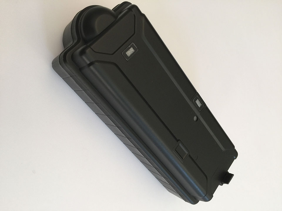 Varnar för lågt batteri. Laddare medföljer. Inbyggd vibrationssensor / larmsensor. Inbyggd antenn. IPX7: Vattentät. Storlek: 153 x 58 x 45 mm.